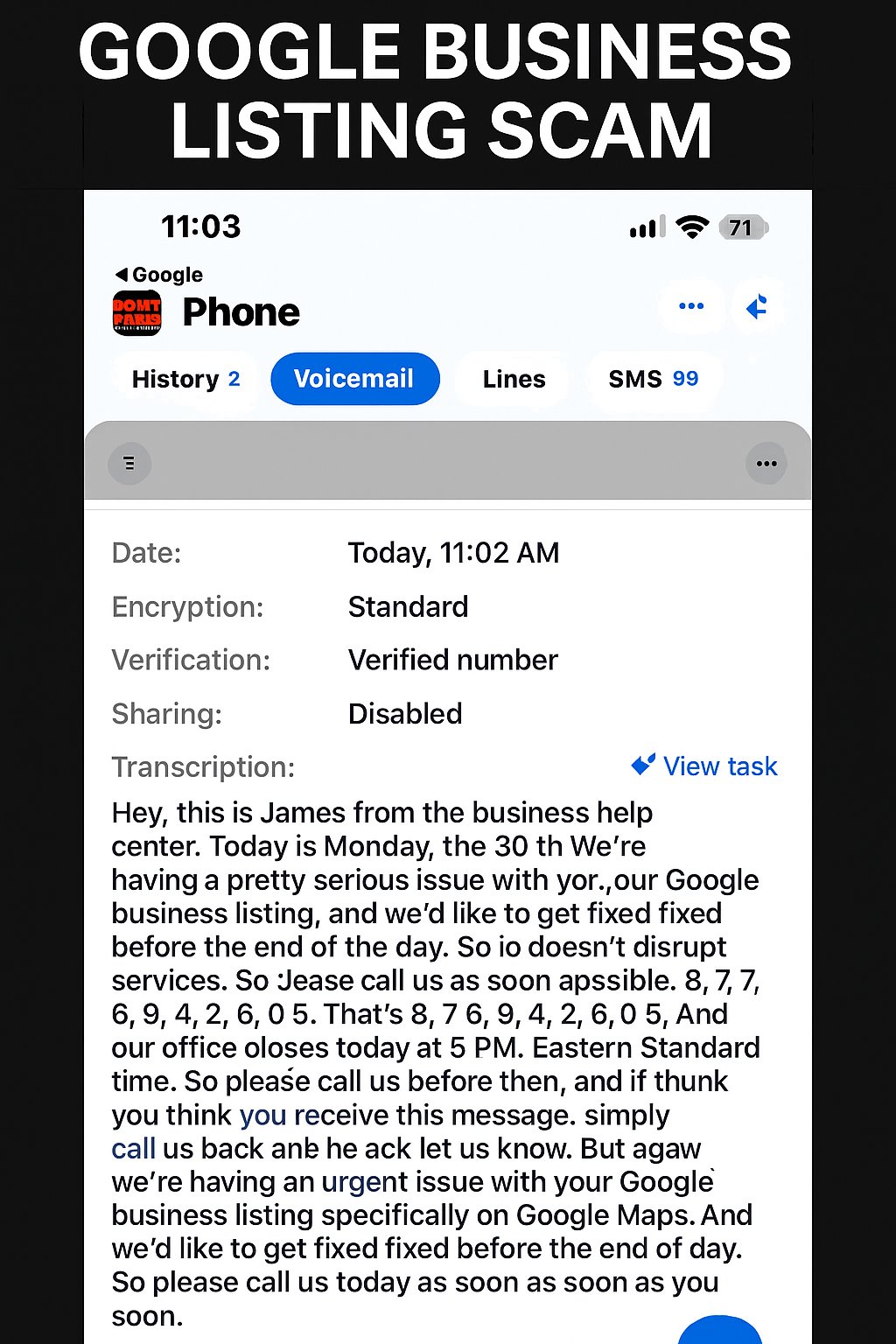 Google Business Listing Scam: Don’t Fall for the Urgent Voicemail
